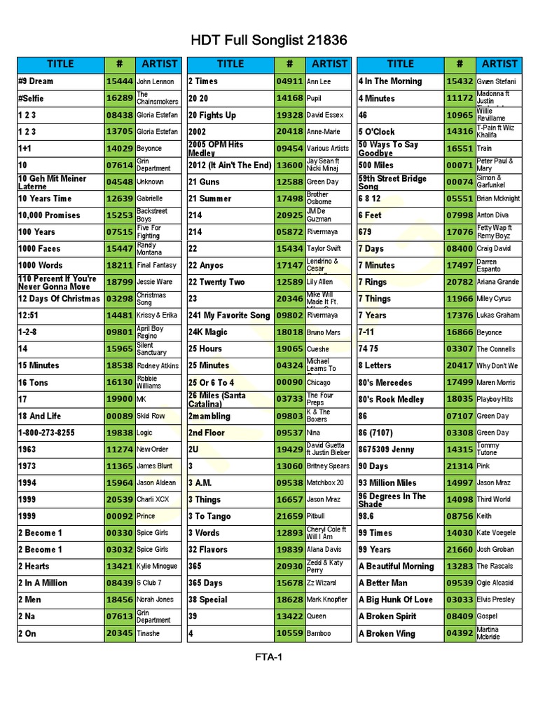 Hdt Full Songlist 21836 P Hyundai Karaoke Player Songlist Volume 21 836 Musicians Artists