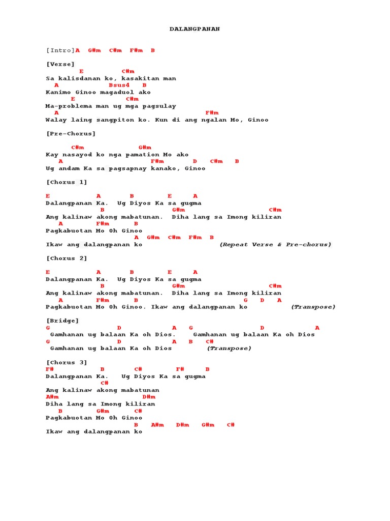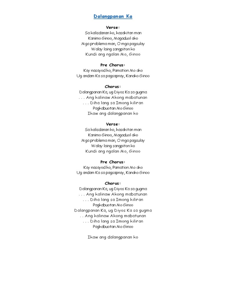 Ikaw akong Ginoo Ikaw akong kusog Ikaw ang akong gugma Ang kinabuhi ko Ikaw akong kalipay Og ang katagbawan Ikaw ang dalangpanan Ikaw ang. Refrain 2 Dalangpanan Ka Ug Dios Ka sa gugma Ang kalinaw.